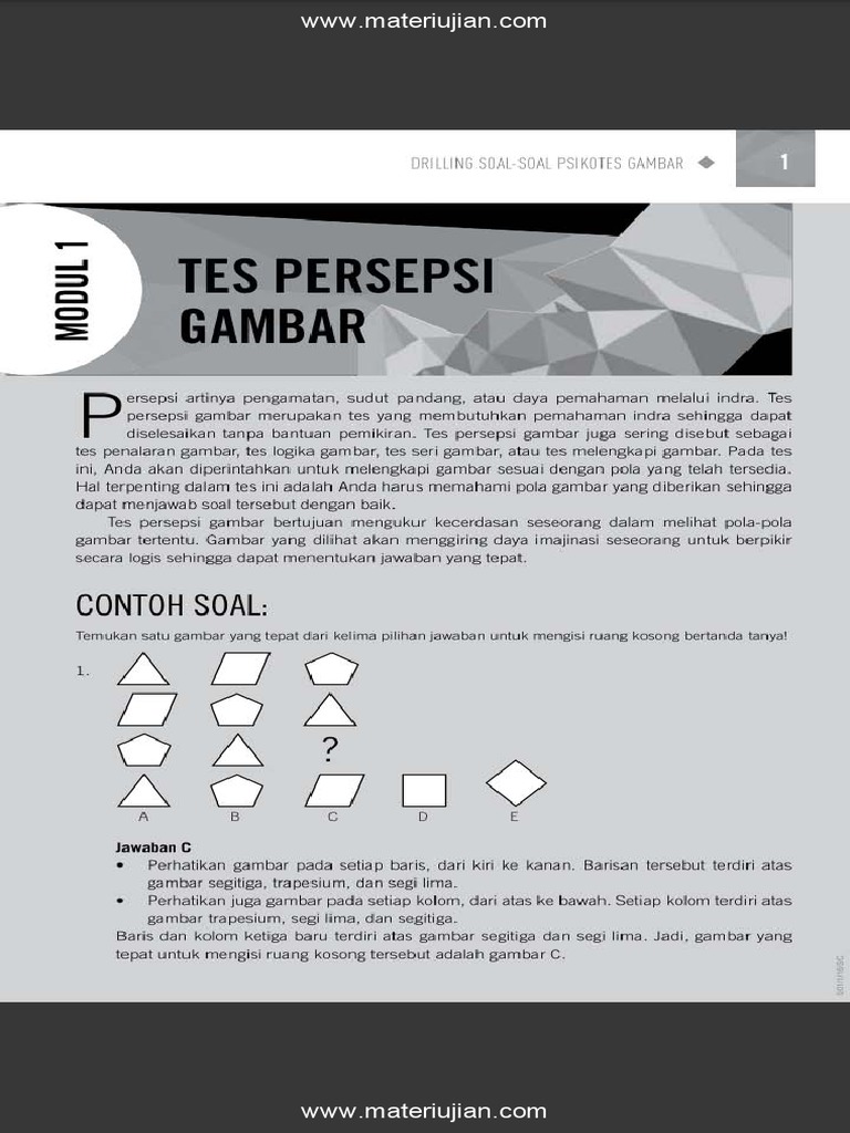 Ada soal psikotes gambar matematika logika dan sinonim antonim. Untuk jenis Tes kemampuan verbal ini kandidat yang akan ujian setidaknya mengetahui beragam soal soal psikotes tentang. Soal psikotes mempunyai banyak jenis diantaranya adalah soal aritmatik padanan kata lawan kata padanan hubungan logika hingga menggambar.