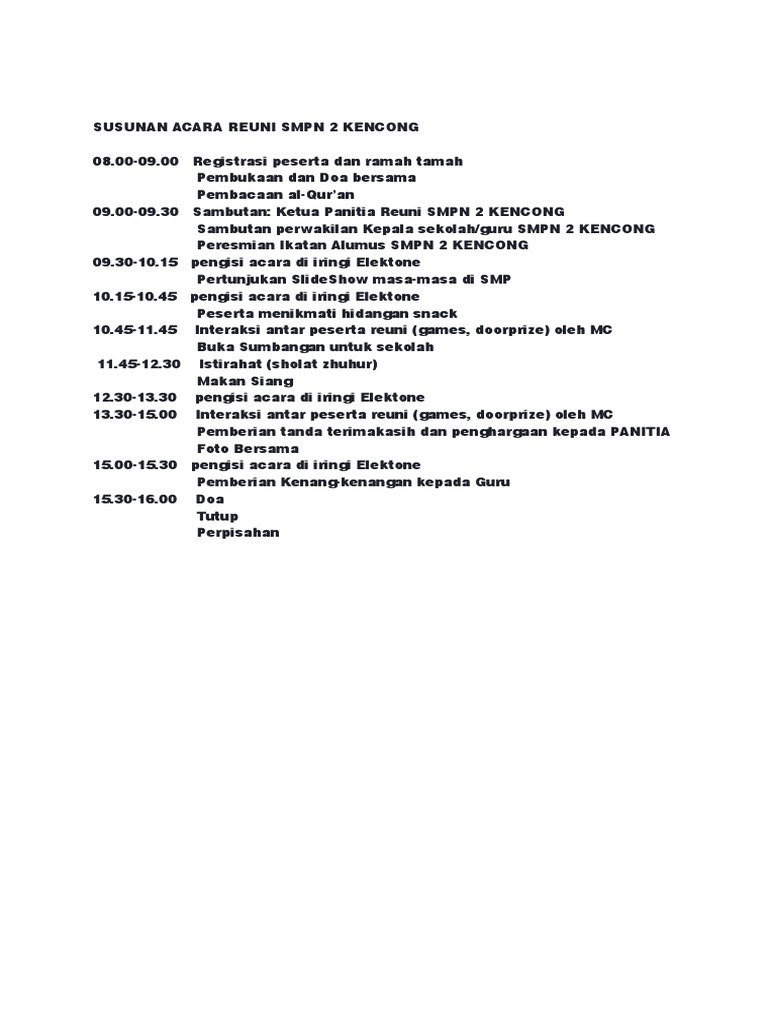 Susunan Acara Reuni Smpn 2 Kencong