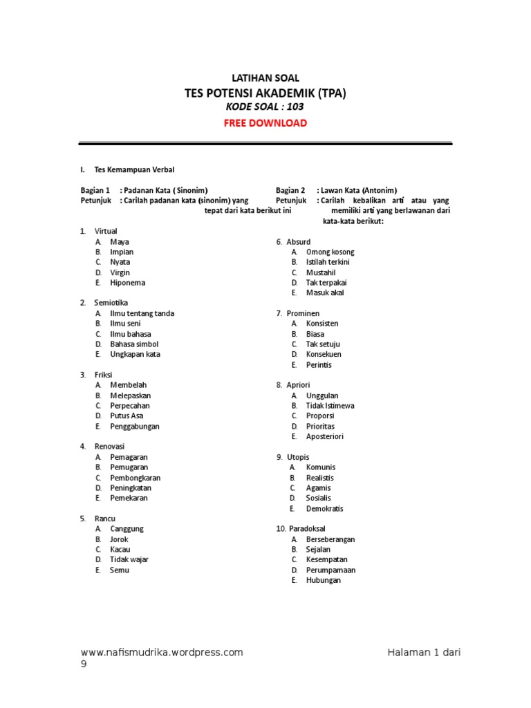 103 FREE DOWNLOAD I. Padahal pas saya baca lagi waduh tulisan apa ini berantakan sekali. Soal Tes Masuk Unindra Revisi Sekolah.