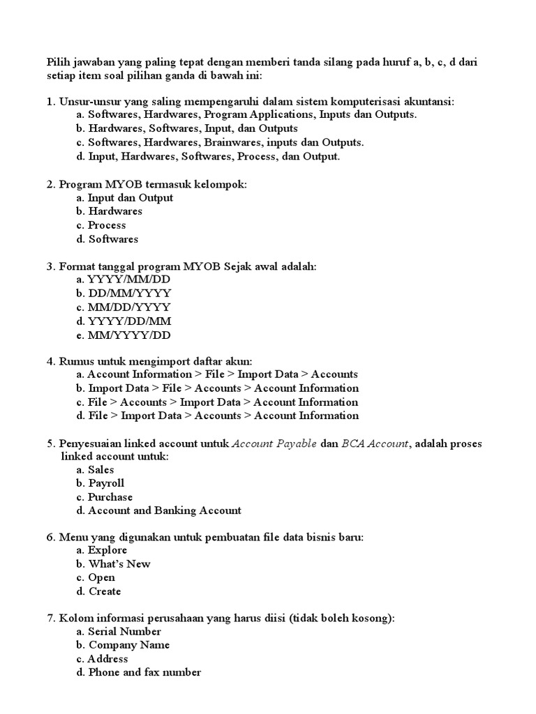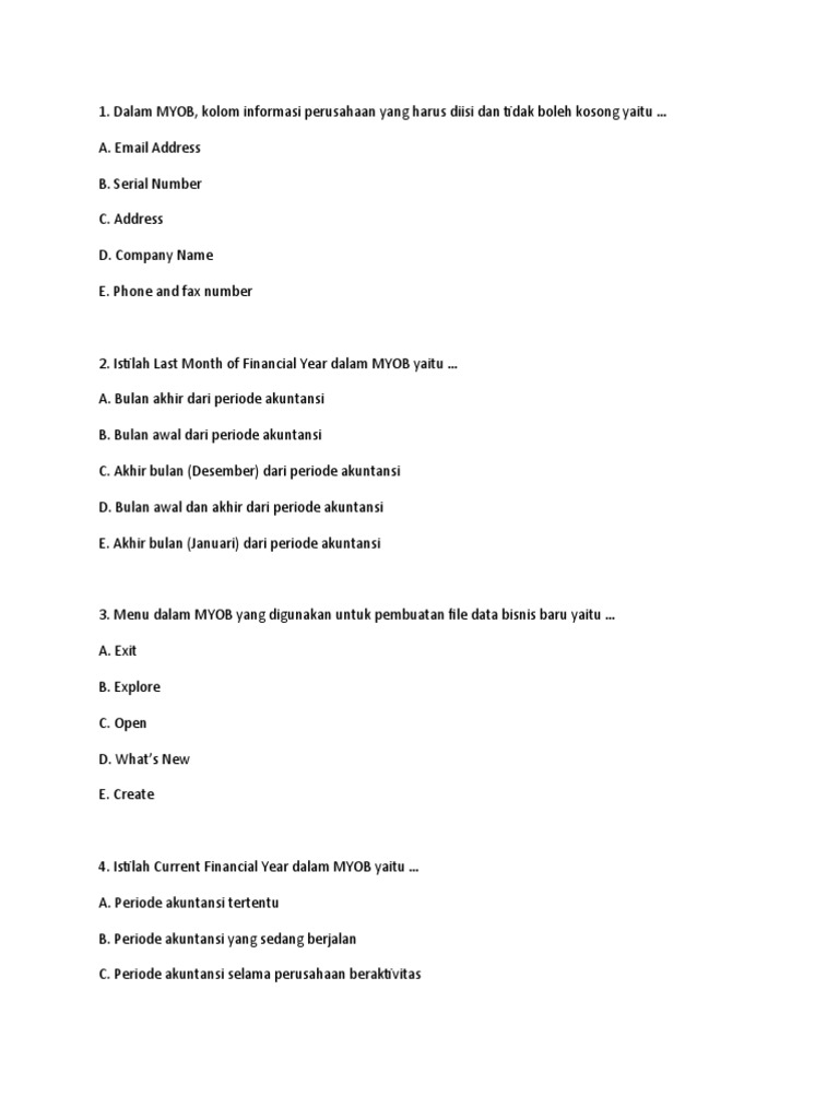 Jawaban Myob Docx Tes Pengetahuan Pilih Jawaban Yang Paling Tepat Dengan Memberi Tanda Silang Pada Huruf A B C D Atau E Dari Setiap Item Soal Pilihan Course Hero