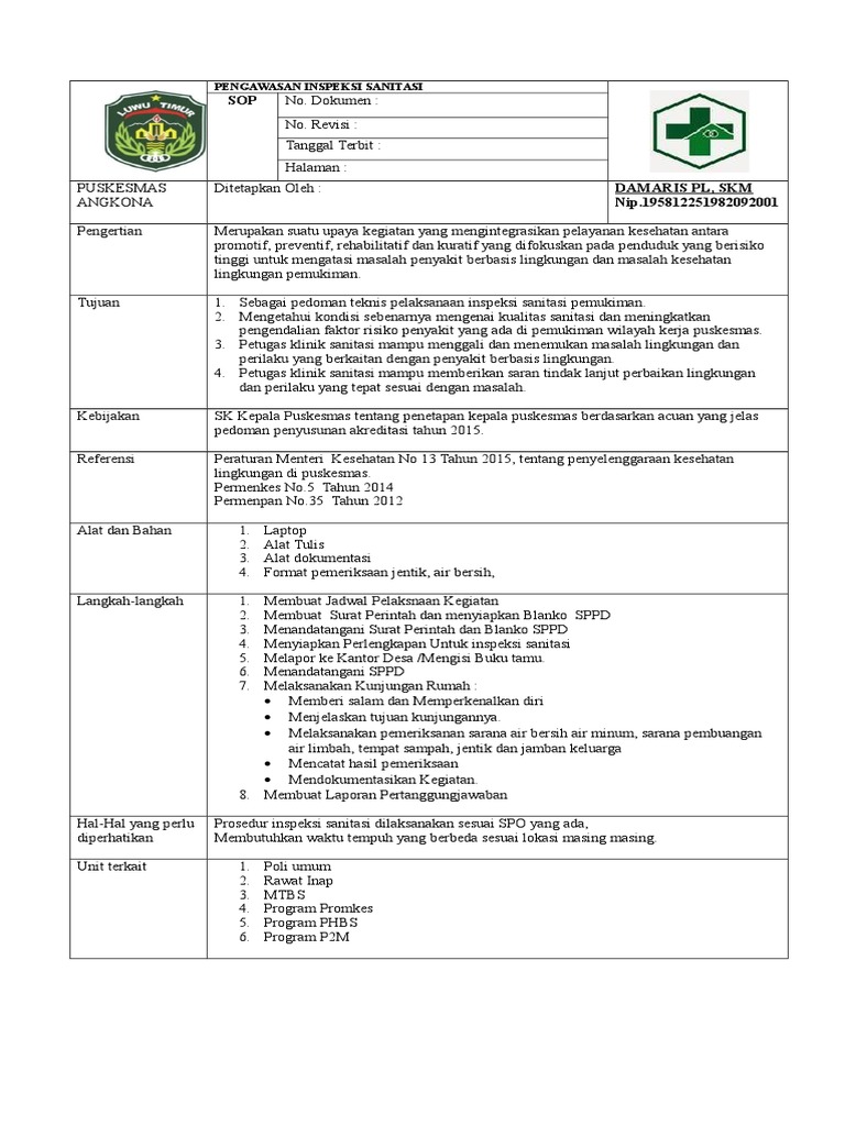 Sop Inspeksi Kesehatan Lingkungan Docx